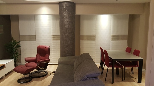 Ofrecemos una amplia gama en cortinas, estores, paneles japoneses, etc, junto con un gran catálogo de cortina técnica: persianas enrollables, lama vertical, venecianas aluminio, madera, todo esto combinado con una extensa gama de herrajes para rieles, estores, barras decorativas en madera, acero, hierro forjado y galerias decorativas.